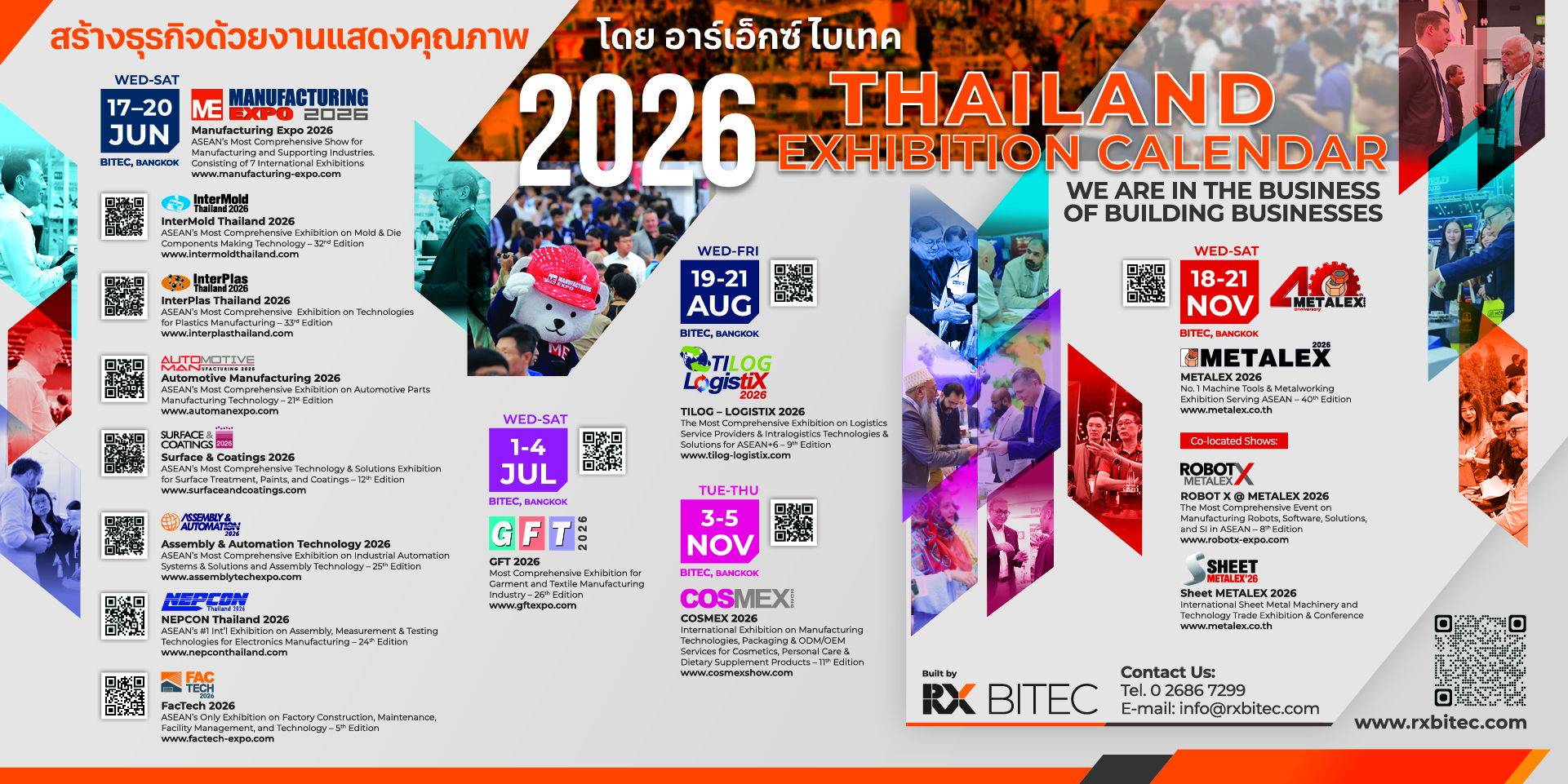 Manufacturing & Supporting Industry: “Manufacturing Expo”, “Vietnam Manufacturing Expo”, “InterPlas Thailand”, “InterMold Thailand”, “Automotive Manufacturing”, “Assembly and Automation Technology”, “NEPCON Thailand”, “NEPCON Vietnam”, “FacTech”, and “Surface & Coatings”